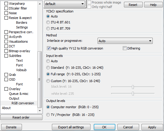 Other decoders offer a way for the user to specify whether to perform the contrast shift between the full range of decoded values (0-255) and the more limited range of values for rec.601. Here are screen shots from ffdshow and VLC: